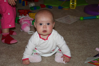 I am about a week late with this post, but Emeri is 6 months old!! She is absolutely the happiest baby I've ever seen. All you have to do is look at her and she starts smiling and kicking her feet. She is rolling over and sitting up by herself, she has two little bottom teeth and she is just getting started on cereal. Where does the time go???